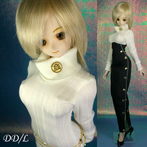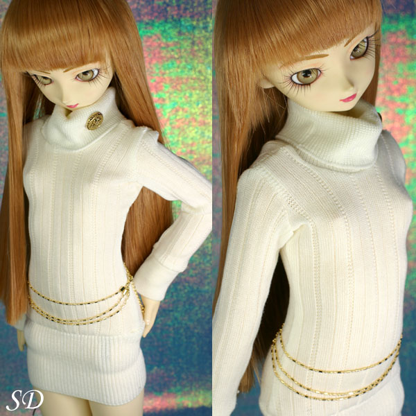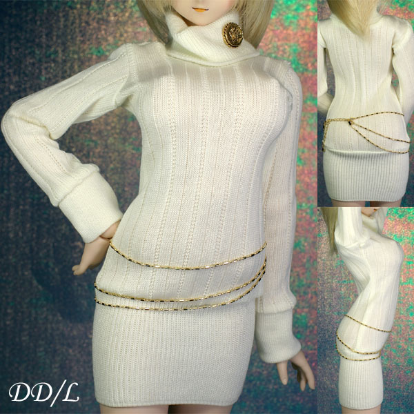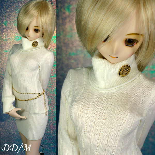 タートルネックのニットワンピ。