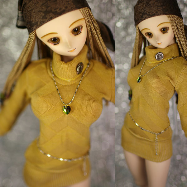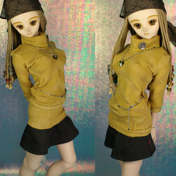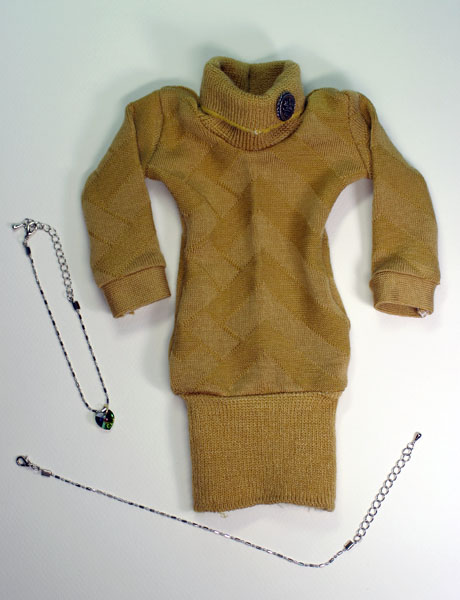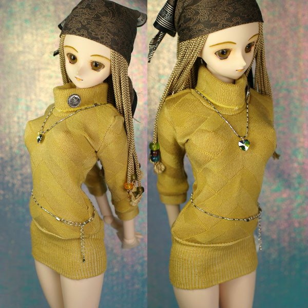 イエローというかカラシ色のニットワンピ。いい色合いです。