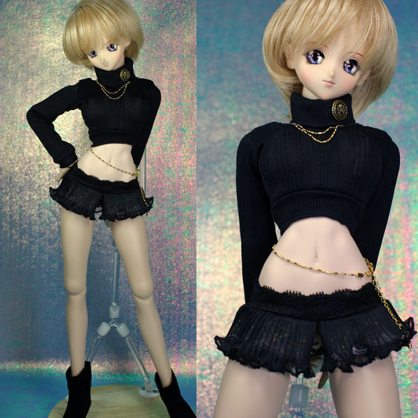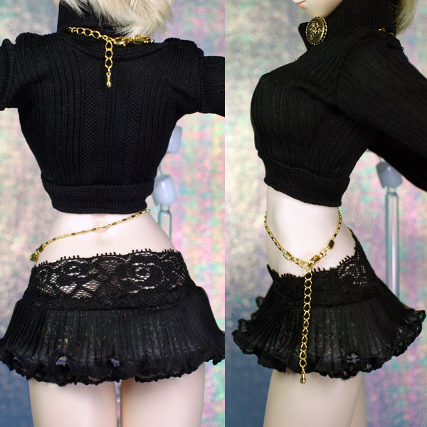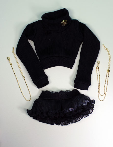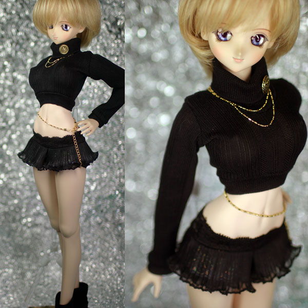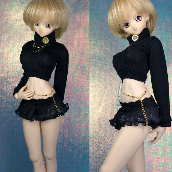 フリルミニセット 黒。 ショート丈トップスとフリルミニスカートのセットです。 小悪魔っぽいイメージなのです。