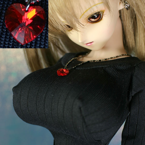 黒色のチェーンにスワロフスキーのペンダントトップ。
