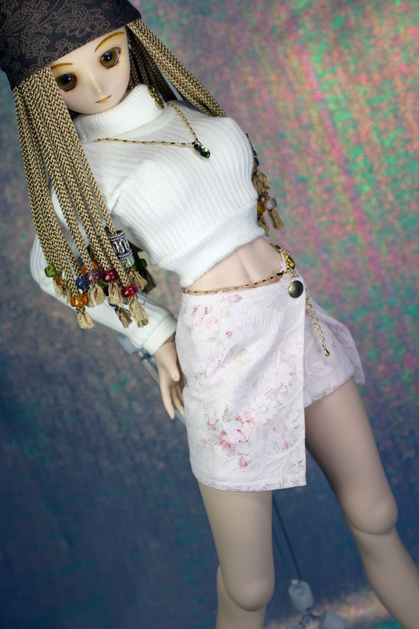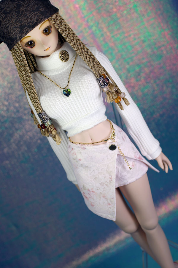 ・ショート丈トップス。 ・ラップミニスカート。 ・ブローチ。 ・ペンダント。 ・チェーンベルト。 ラップミニスカートのセットです。