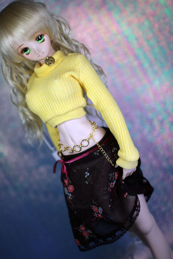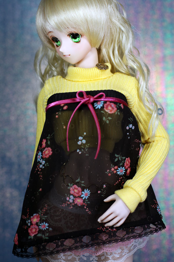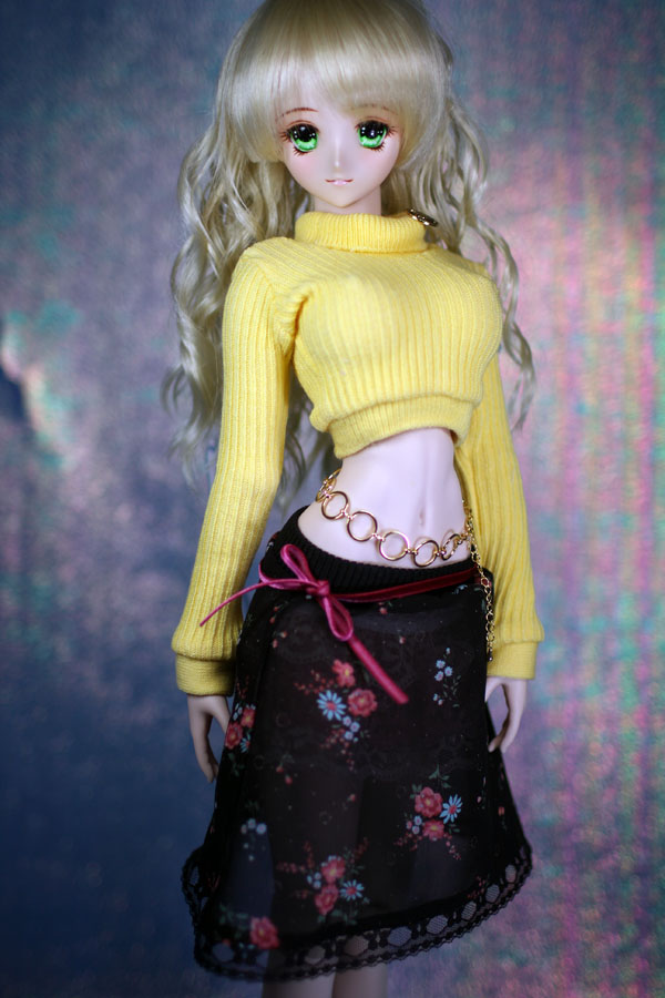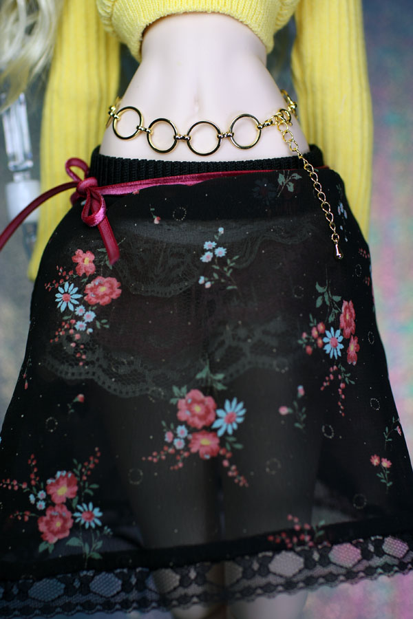 ・ショート丈ニットトップス ・2wayシフォン ・パニエ ・チェーンベルト ・リボン ・ブローチ 透け感のあるシフォンのチュニック。