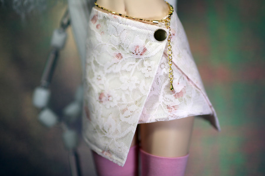 ・ショート丈トップス。 ・ラップミニスカート。 ・ブローチ。 ・ペンダント。 ・チェーンベルト。 ・オーバーニーソックス。 ラップミニスカートのセットです。 ペンダントトップは、スワロフスキー。