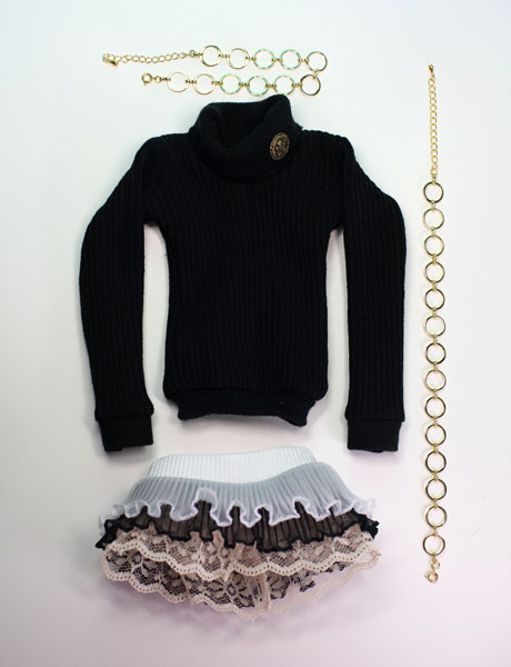 レース・黒フリル・白フリルと重ねています。