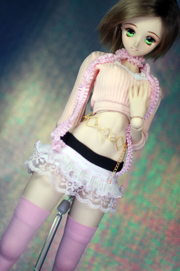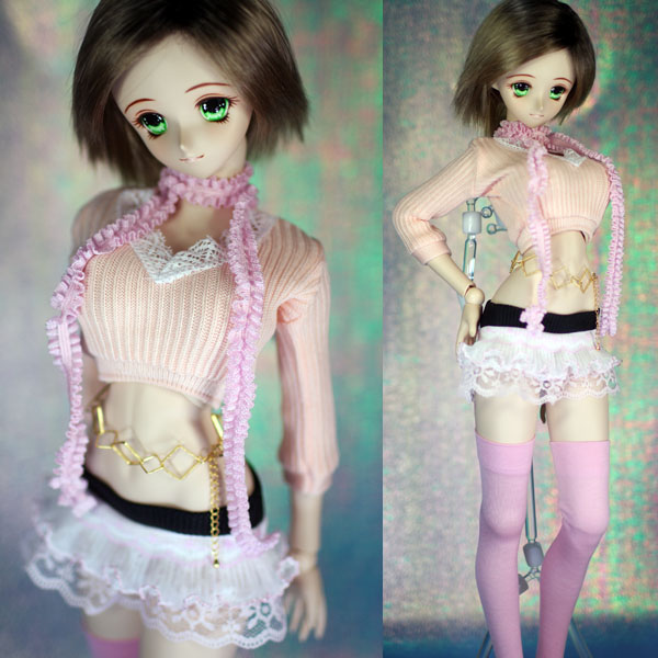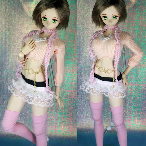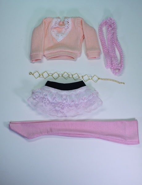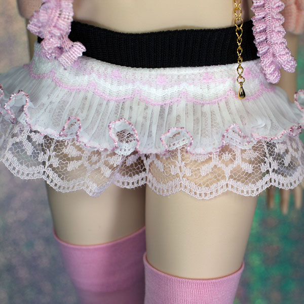 レースとフリルを重ねて作ったミニスカートのセット。