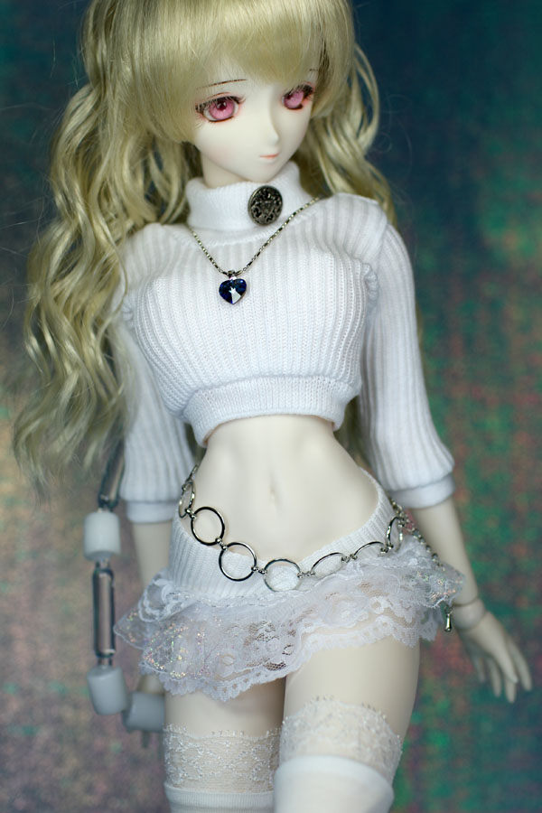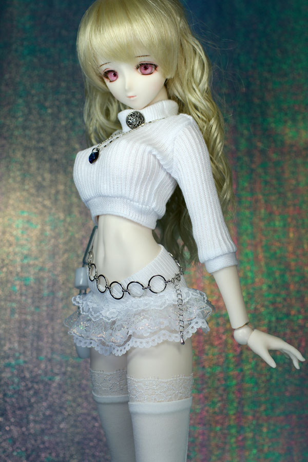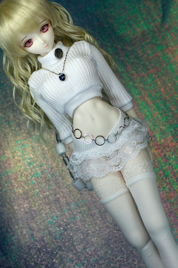 ・ニットトップス ・ブローチ ・ミニスカート ・オーバーニーソックス ・ペンダント ・チェーンベルト